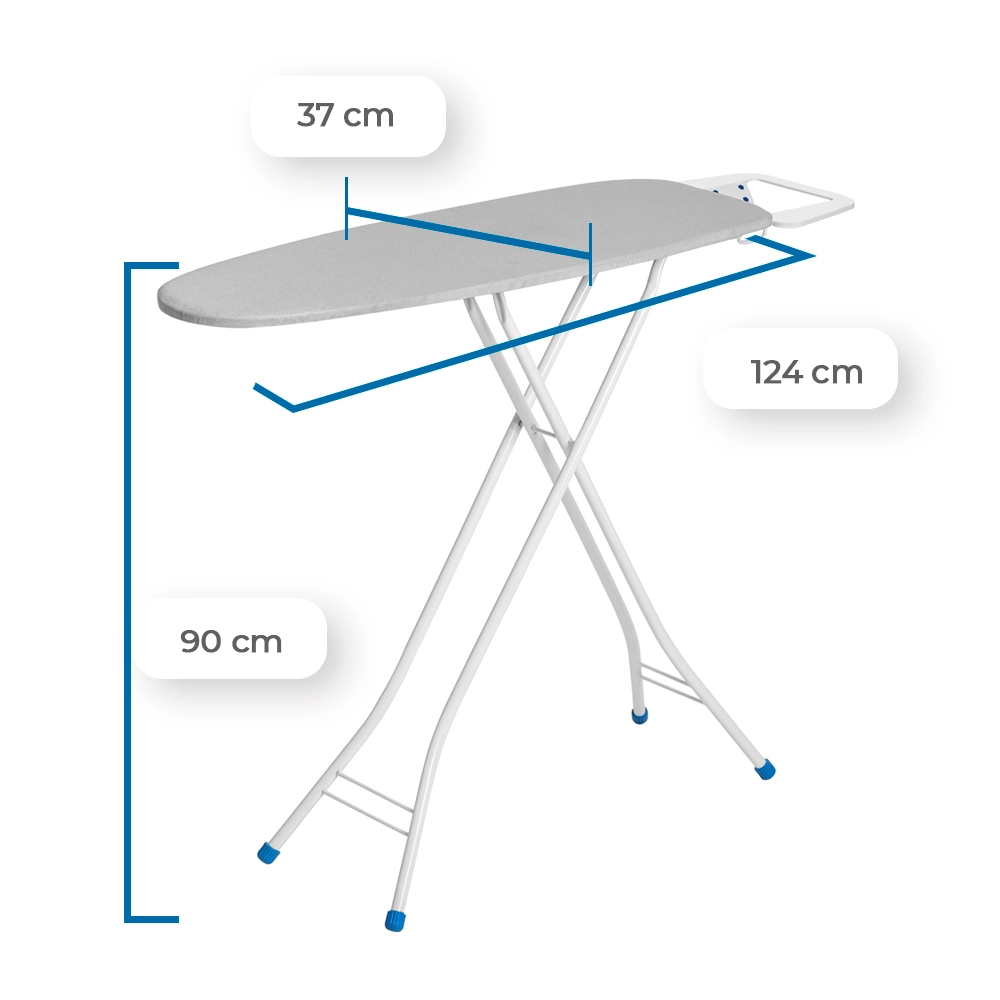 A espuma de poliuretano de 7 mm com densidade D16 oferece uma superfície macia para passar roupas, enquanto o forro metalizado 100% algodão, resistente a altas temperaturas, otimiza o desempenho e evita a sensação escaldante, trazendo mais segurança e conforto.