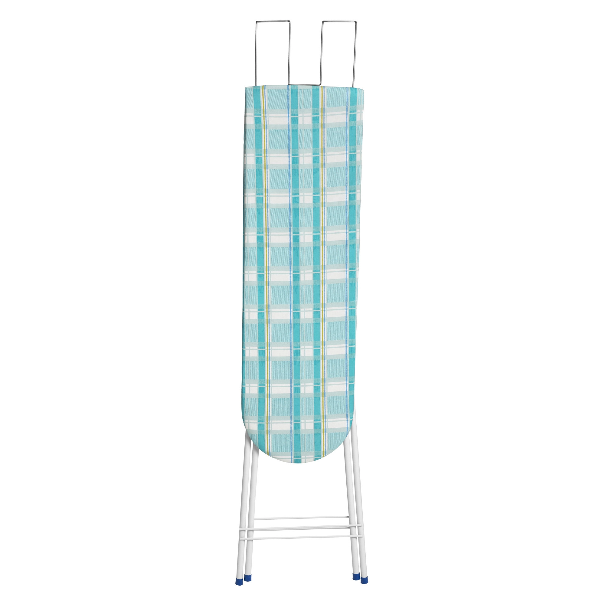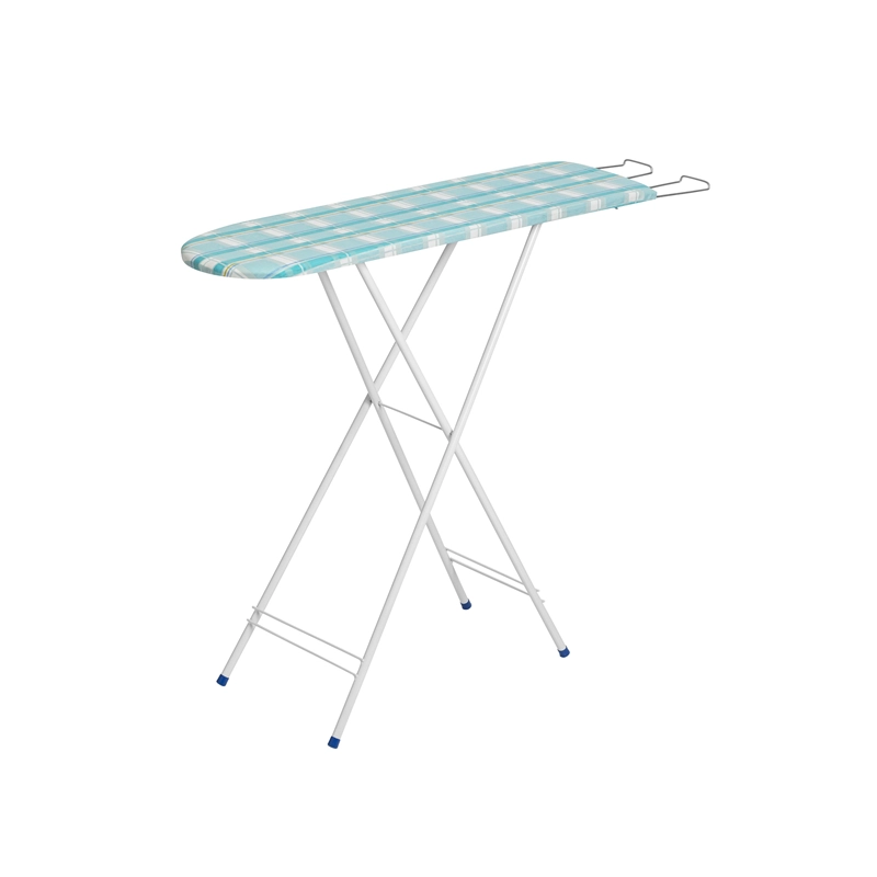 Inclui um suporte de ferro aramado retrátil zincado, que facilita a organização em diferentes ambientes. Para maior segurança e estabilidade, a tábua conta com ponteiras antiderrapantes de PVC nos pés.
