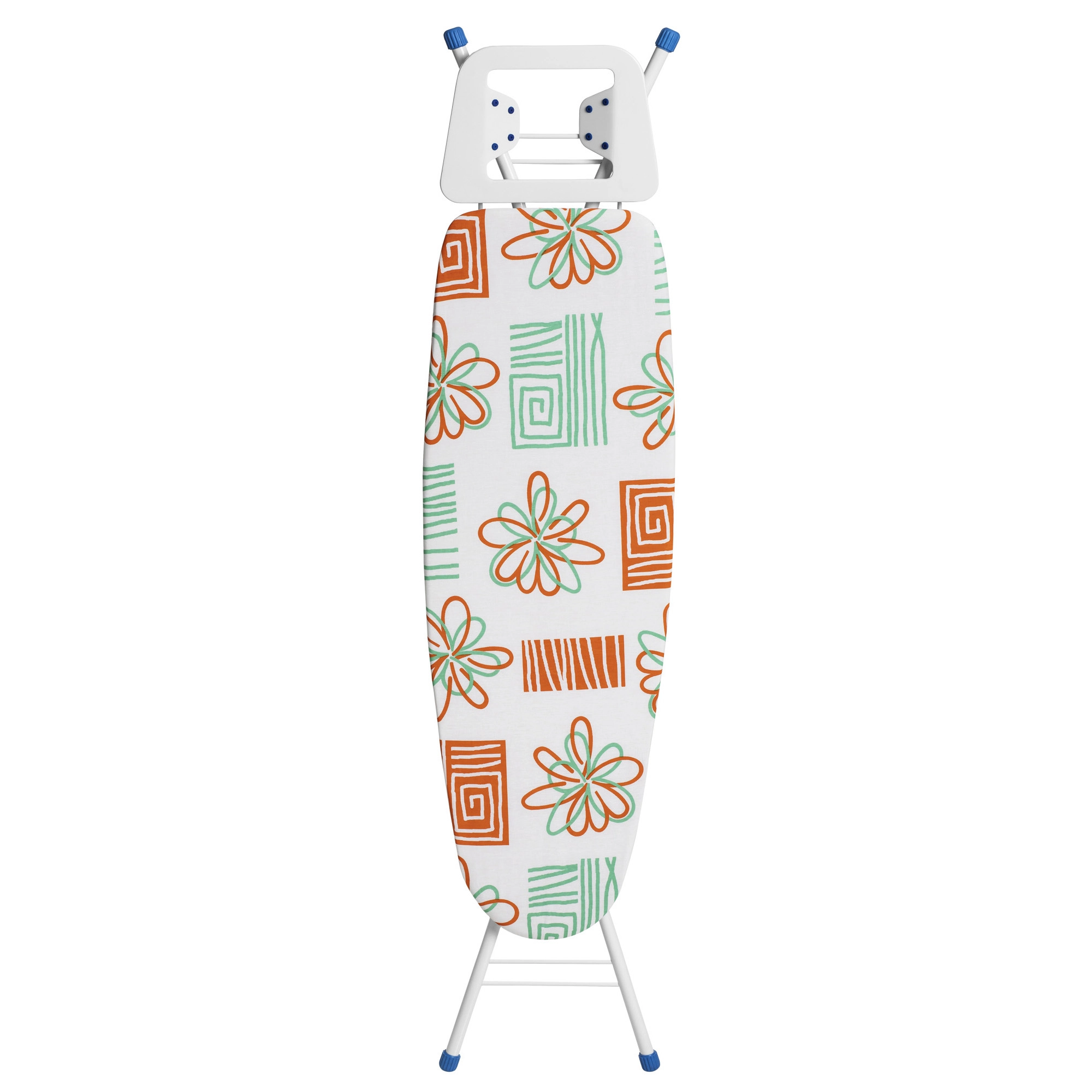 O suporte para ferro, com 8 pontas de silicone, inclinado em duas posições, é ideal para manusear o ferro com segurança, mesmo quando quente. Para maior estabilidade, a tábua conta com ponteiras antiderrapantes em PVC nos pés, garantindo segurança e firmeza durante o uso.
