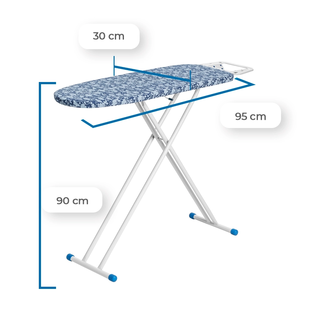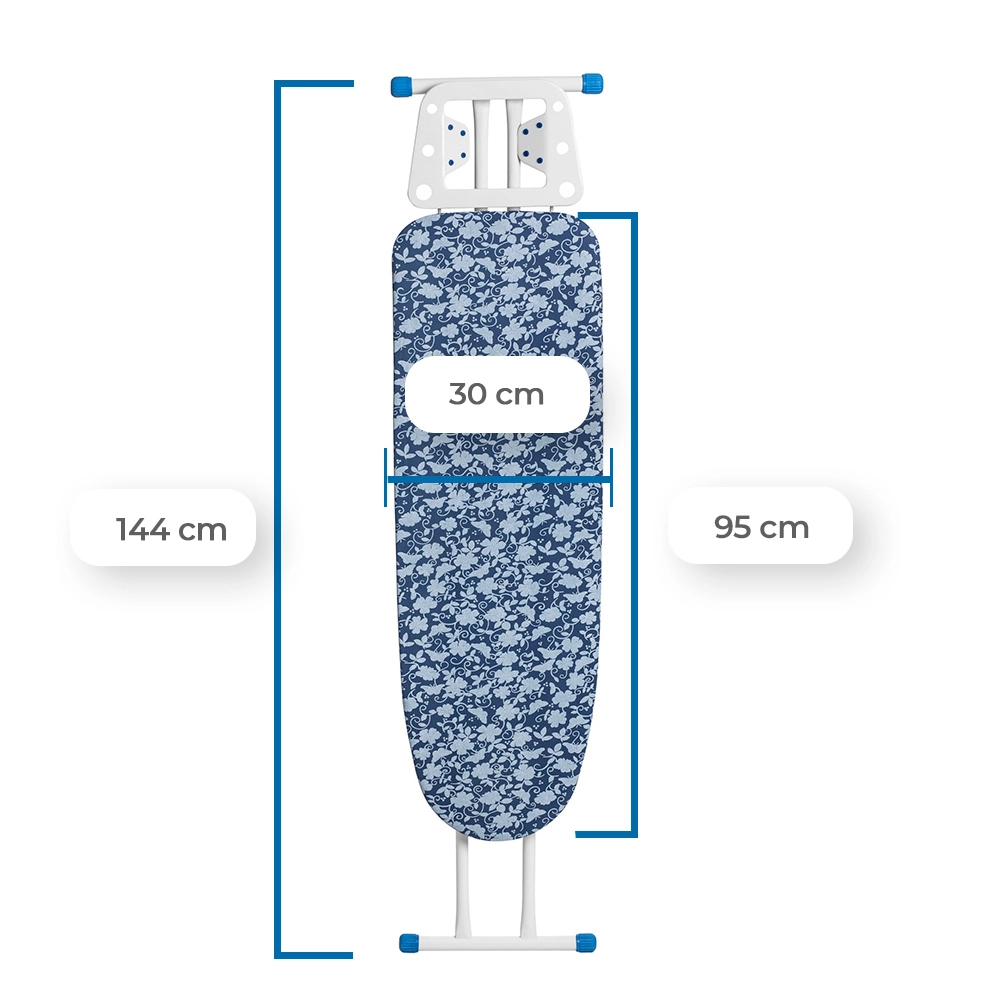 Seu tampo em chapa de aço expandida minimizada, com furos de 6 mm x 3 mm, proporciona leveza ao produto, facilitando o transporte e armazenamento. Essa tecnologia permite que o vapor do ferro passe pelas roupas e saia facilmente, prevenindo o acúmulo de umidade, mofos e bactérias, além de garantir melhores resultados ao passar roupas. Com dimensões de 95 x 30 cm, o tampo é perfeito para diferentes espaços.
