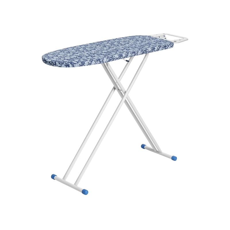 O suporte para ferro, com 8 pontas de silicone, é inclinado em duas posições, garantindo segurança mesmo com o ferro quente. Também inclui suporte para cabides, facilitando a organização. As ponteiras antiderrapantes em PVC nos pés conferem estabilidade ao produto, garantindo maior conforto e segurança durante o uso.