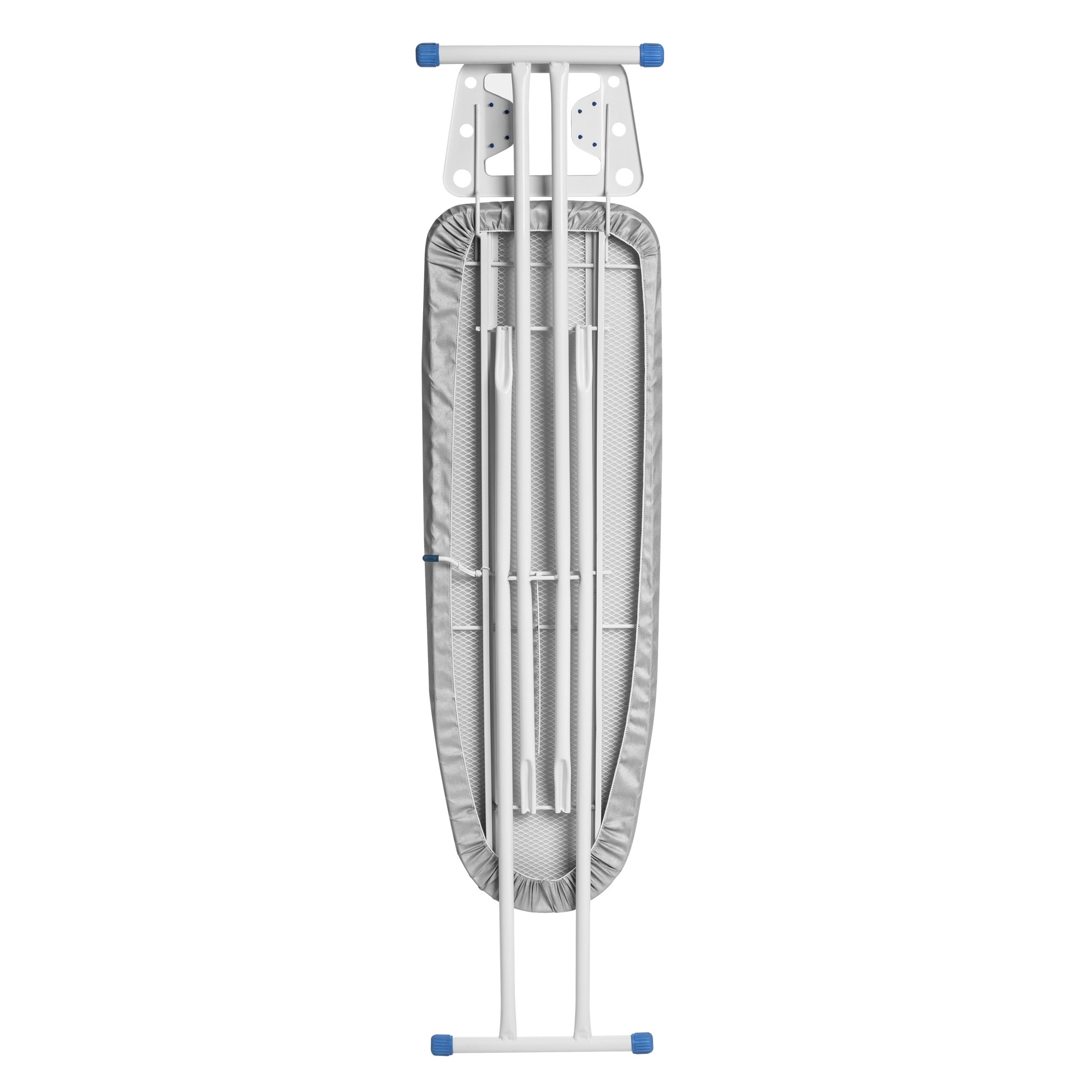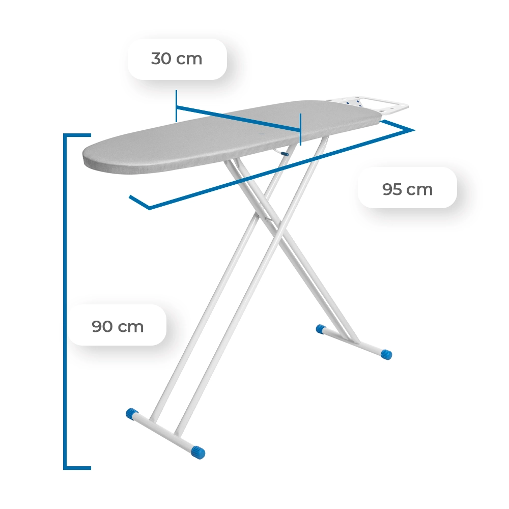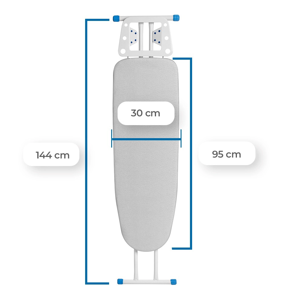 Seu tampo em chapa de aço expandida minimizada, com furos de 6 mm x 3 mm, proporciona leveza ao produto, facilitando o transporte e armazenamento. Essa tecnologia permite que o vapor do ferro passe pelas roupas e saia facilmente, prevenindo o acúmulo de umidade, mofos e bactérias, além de garantir melhores resultados ao passar roupas. Com dimensões de 95 x 30 cm, o tampo é perfeito para diferentes espaços.