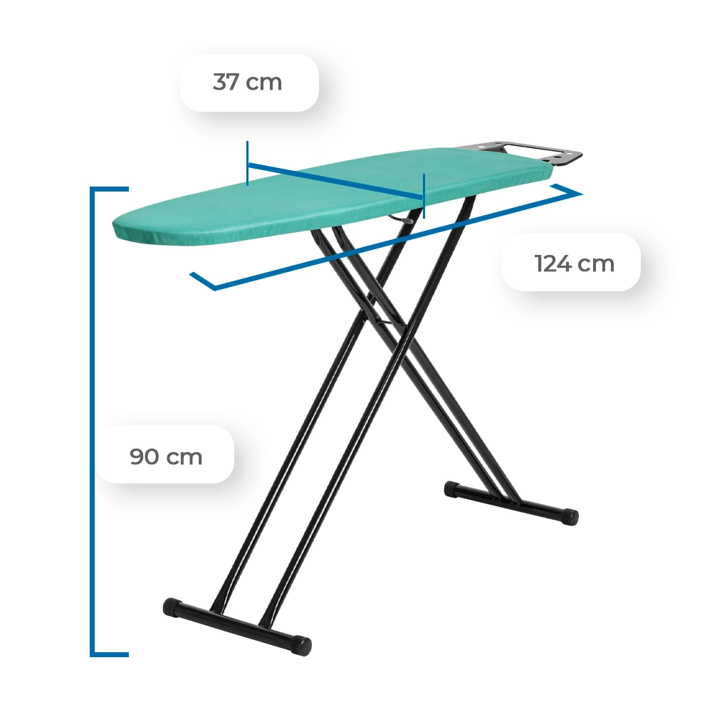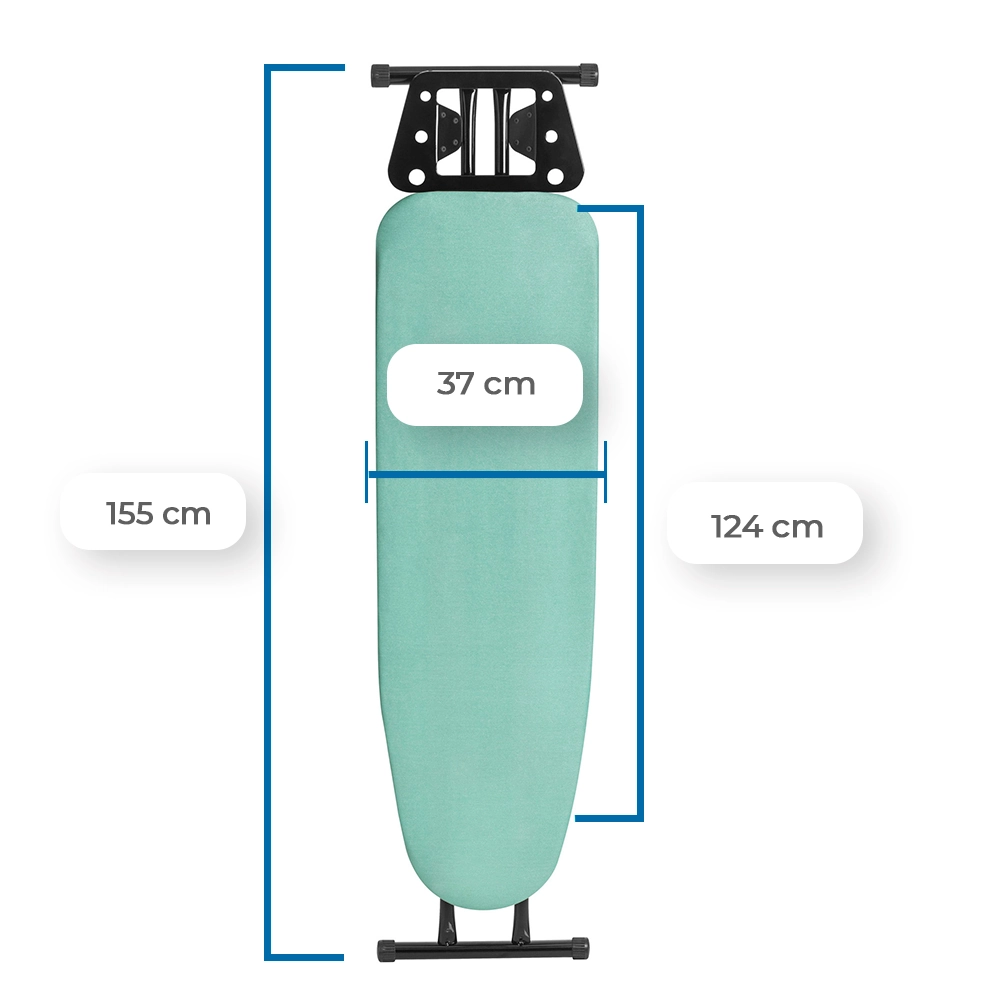 Com 10 níveis de altura ajustáveis (de 50 cm a 90 cm), você pode passar suas roupas confortavelmente, até mesmo sentado. Seu tampo espaçoso, medindo 124 cm x 37 cm, conta com chapa de aço expandida com furos estratégicos (6 mm x 3 mm), que melhoram a circulação do vapor, previnem o acúmulo de mofo e garantem roupas sempre impecáveis.