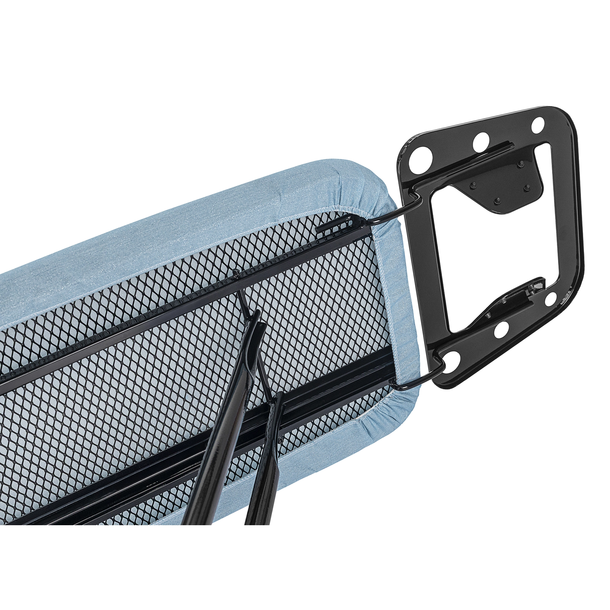 Seu suporte para ferro, com 8 pontas de silicone, é inclinado em duas posições e suporta altas temperaturas, proporcionando segurança extra para o manuseio do ferro e podendo ser usado como cabideiro. Os pés com ponteiras antiderrapantes em PVC garantem estabilidade e segurança em qualquer superfície.