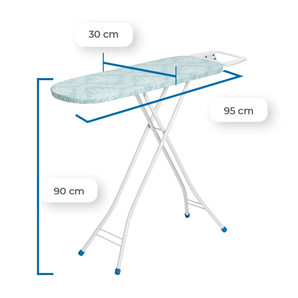 Inclui um suporte para ferro com 8 pontas de silicone, inclinado em duas posições, que garante segurança mesmo com o ferro quente. As ponteiras antiderrapantes em PVC nos pés asseguram estabilidade durante o uso.